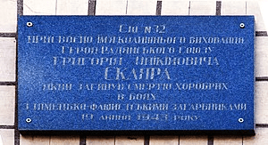 Одной из школ, продолжавших работать в начале войны, была средняя школа номер 32, но очень скоро оккупационные войска ее разрушили. Объект также интересен своими учащимися. Одним из них был криворожец Скляр Григорий Аникеевич, обучавшийся в школе с 1925 по 1932 гг. Он участвовал в войне с августа 1941 года, тогда командовал батальоном 221 гвардейского стрелкового полка 77 гвардейской стрелковой дивизии. Григорий получил ряд наград, но в 1943 году погиб в битве за село Белгородской области. Ему удалось остановить 12 танков, 7 из которых он уничтожил и посмертно получил звание Героя Советского Союза.