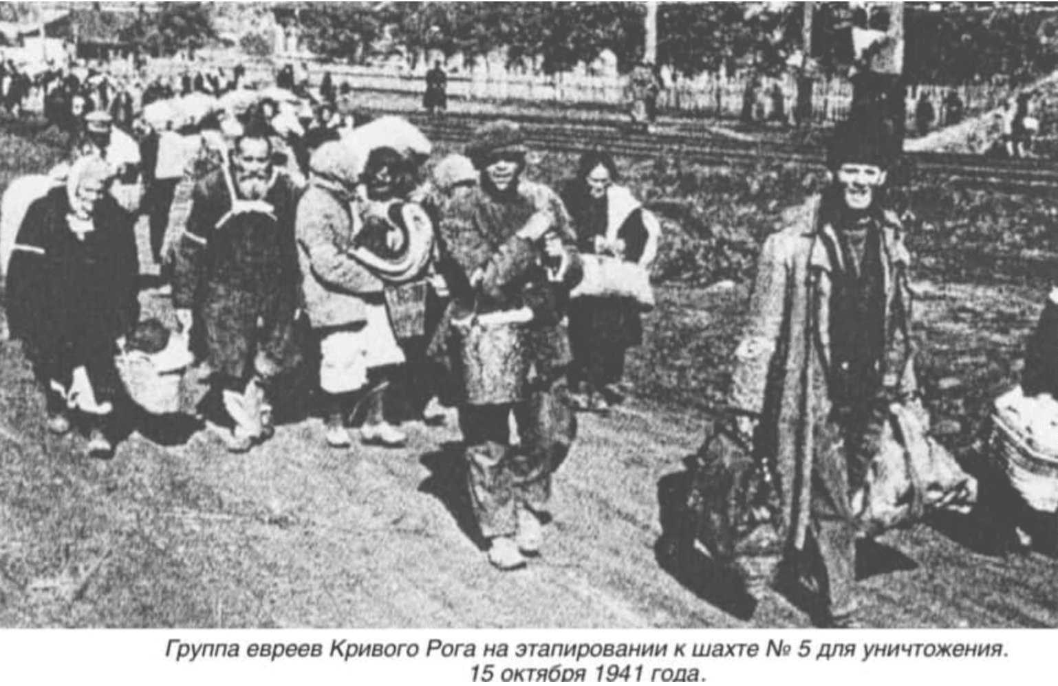 Масові розстріли євреїв у Кривому Розі розпочалися у жовтні 1941 року. Німці спеціально вишукували євреїв у місті. Усіх їх зводили в одне місце – синагогу, що знаходилася по вулиці Каунаській. Там у них відбирали всі їхні речі та тримали деякий час. Після цього німецькі окупанти вели тисячі євреїв до місця розстрілу – шахти №5. Вони йшли через невеликий вокзал, будівлі “Холодокомбінату”, йшли лінією залізниці прямо до шахти.