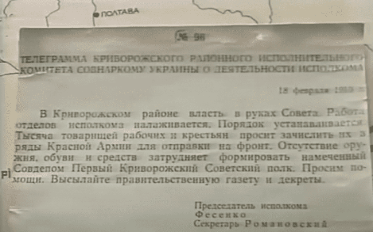 У 1919 році вперше у будівлі криворізького театру по вулиці Поштовій відкрився перший з’їзд міської ради на чолі з більшовиками. Тоді ними було ухвалено досить сміливе рішення без участі уряду України. Зокрема, було змінено статус Кривого Рогу з містечка на місто та призначений великим центром повіту у складі 34 волостей. Також на першому з’їзді Криворізької міської ради було обрано голову новоствореного повітового виконкому – більшовика Олександра Фесенко. Далі на kryvyi-rih-yes.com.ua.